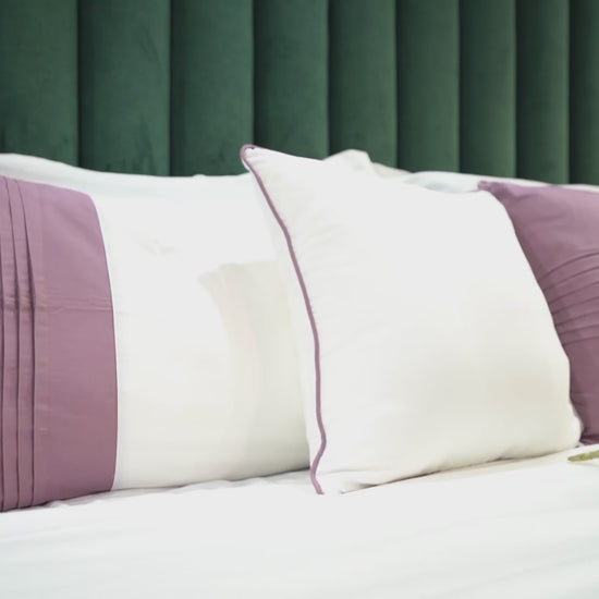 Immerse yourself in modern luxury with the Dual Tone Stripe Cotton Bed Sheet Set. This unique design features a contrasting top and bottom with stylish stripes, offering a versatile and dynamic look for your bedroom. Crafted from pure cotton, the sheets and matching designer cushion covers provide ultimate comfort and a touch of contemporary elegance. Mix and match between pleated and lace border styles on the cushion covers and pillowcases to create your perfect combination of modern and timeless elegance.